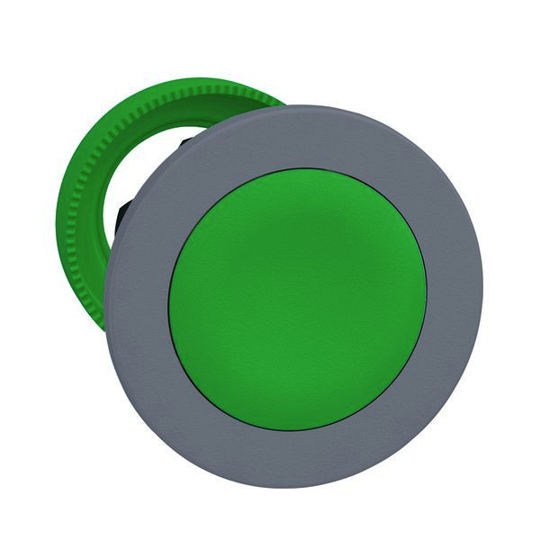 Drucktaster aus Kunststoff als Frontelement und 30mm Einbaumaß, Baureihe Harmony XB5F für flachen Einbau. Farbe des Drucktasters ist grün. Betätigungsfunktion ist ohne Rastung. Die Farbe des Außenrings ist grau. Die modularen Harmony Baureihen mit 30mm Einbaumaß kombinieren einfache Installation, Effizienz, modernes Design, Flexibilität mit höchster Robustheit. IP-Schutzklassen bis IP69K und Umgebungstemperaturen von -40°C bis +70°C. Produktstandards gem. EN/IEC 60947-5-1, EN/IEC 60947-5-4, CSA C22.2 No 14, UL 508, EN/IEC 60947-1, JIS C 4520. Zertifizierungen nach DNV, GL, UL gelistet, RINA, BV, CSA, LROS (Lloyds register of shipping). Produktstandards gem. EN/IEC 60947-5-1, EN/IEC 60947-5-4, CSA C22.2 No 14, UL 508, EN/IEC 60947-1, JIS C 4520.