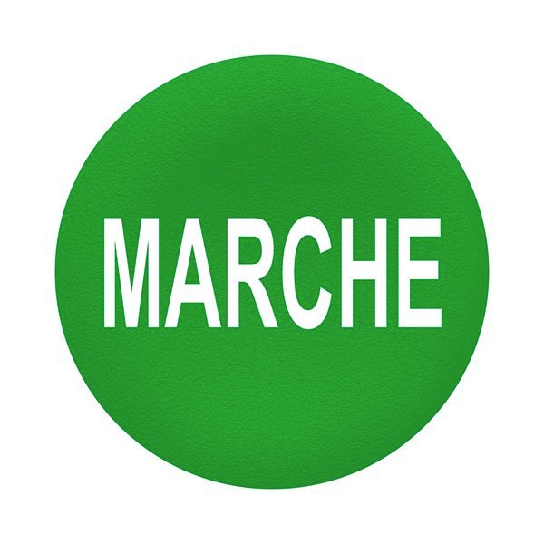 Tastenschild Harmony XB5F für 30 mm Kontrolleinheiten.Beschriftet mit MARCHE in weiß.Hintergrund schwarz.