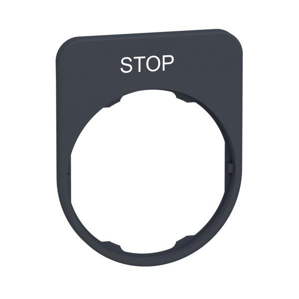 Kunststoff Schildträger 40x50mm kompatibel mit den 30mm Harmony Frontelemenen XB4F und XB5F für flachen Einbau. Mit Schild und Beschriftung STOP. Die Farbe des Schildträgers ist grau. Die modularen Harmony Baureihen mit 30mm Einbaumaß kombinieren einfache Installation, Effizienz, modernes Design, Flexibilität mit höchster Robustheit. IP-Schutzklassen bis IP69K und Umgebungstemperaturen von -40°C bis +70°C. Produktstandards gem. EN/IEC 60947-5-1, EN/IEC 60947-5-4, CSA C22.2 No 14, UL 508, EN/IEC 60947-1, JIS C 4520. Zertifizierungen nach DNV, GL, UL gelistet, RINA, BV, CSA, LROS (Lloyds register of shipping). Produktstandards gem. EN/IEC 60947-5-1, EN/IEC 60947-5-4, CSA C22.2 No 14, UL 508, EN/IEC 60947-1, JIS C 4520.