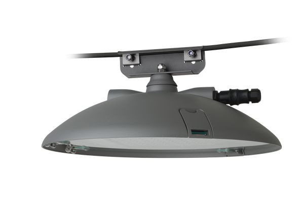 LED-Seilleuchte, REDONDO, 106 W, 15890 lm, SKII, IP66, symmetrisch-breitstrahlend, 3000 K, Ra= 70, Ta -40 °C/+25 °C, L95>100000 h (@ Ta max), Ready for Light Management Systems (RFL), Sockel oben (RFLO), Scheibe Sicherheitsglas klar, Verschluss Edelstahl V4A, Gehäuse Alu-Druckguss, Lackiert, Farbe grau, DB 702, FastConnect (FC), EAN/GTIN:4041254422084.LED-Seilleuchte REDONDO. Pulverlackiertes Aluminiumdruckgussgehäuse, mit Tragebügel, Neigungsverstellung, Schnellsteckverbindung (FastConnect) und Druckausgleichssystem. LED-Modul(e) und EVG auf werkzeuglos herausnehmbaren Trägerblechen im Leuchtengehäuse montiert und über Trennsteckverbindung angeschlossen. Rahmenloses, flaches Sicherheitsglas mittels integrierter Kniehebel werkzeuglos abklappbar. Durch das Abklappen der Leuchtenabdeckung wird der Anschlussraum und alle elektronischen Komponenten zugängig. Zhaga-konformer Sockel auf der Oberseite und/oder Unterseite des Gehäuses. Zhaga-konforme LED-Module mit hocheffizienten Optiken, direktstrahlend, Multi-Layer Technologie. EVG mit hoher Stoßspannungsfestigkeit, Überlast- und Kurzschlussschutz. Seilbefestigung mit allseitig drehbarem und um 15° neigbarem Edelstahltragebügel für Quer- Längs- und Schrägtragseile Ø 6-12mm. Die Leuchte ist vorbereitet für den nachträglichen Einsatz von Komponenten eines Lichtmanagementsystems mit Zhaga-konformem Sockelanschluss. RFL-Leuchten von Schuch verwenden ausnahmslos D4i-Betriebsgeräte. Alle am Markt verfügbaren D4i-Zhaga-Buch-18-zertifizierten Controller und D4i-Zhaga-Buch-18-zertifizierten Sensoren können in Kombination mit RFL-Leuchten von Schuch verwendet werden. Durch Controller und Sensoren, die nicht dem D4i-Standard entsprechen, kann hingegen die Funktionalität der Leuchten und Komponenten eingeschränkt sein. Zudem kann es im Einzelfall bei solchen nicht zertifizierten Komponenten zu einer Schädigung sowohl der Leuchten als auch der Komponenten kommen.