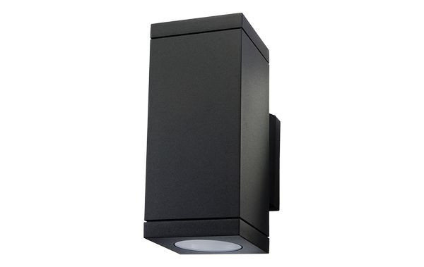 Stilvolle eckige Wandleuchte für den Außenbereich. In den Versionen Wandleuchte, mit Lichtaustritt nach unten oder nach oben und unten, sowie als Deckenleuchte erhältlich. Leuchtmittel austauschbar (GU10). Eckmontage durch Zubehör (optional) möglich.