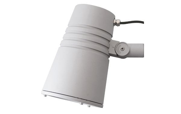 Design: Christian Hvidt. Spot-LED-Leuchte. LED-Leuchte in Schutzart IP66 mit einer Front aus gehärtetem Glas, Boden und Spitze aus Druckgussaluminium. Für Außenbereiche behandelte hellgraue oder schwarze Struktur. Direkt-Optik mit mehreren Lösungen. Vormontiert mit Anschlusskabel (10 m). Zur Montage an Mast vorbereitet. Design: Christian Hvidt