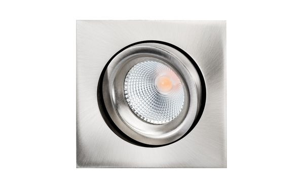 Energieeffizienzklasse: A++, Leuchtmittel: LED integriert, Fassung: CoB Holder, Leistung: 7W, Gesamte Leistungsaufnahme: 8W, Lichtstrom (lm): 520lm, Spannung: 220-240V, Lichtfarbe: 3000K, Schutzklasse: Klasse II, IP (Schutzart): IP44, Gehäuse: Aluminium, Farbe: Gebürsteter Stahl, Optik: Glas, Länge: 95 mm, Breite: 95 mm, Höhe: 50 mm