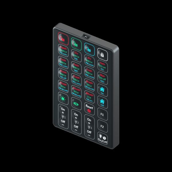IR - Fernbedienung für ein schnelles und individuelles Einstellen diverser Parameter, Geräteart: Fernbedienung – Zubehör, Batterie: Lithium CR 2032 – 3V, Abmessungen: L: 80mm, H: 9mm, B: 50mm, Anwendungsbereich: Innenbereich, Gehäusefarbe: Schwarz, Gehäuse: ABS