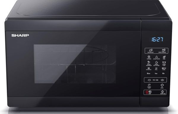 11 Mikrowellen-Leistungsstufen, Grillfunktion, Kombination Mikrowelle+Grill, 8 Automatikprogramme einschl. Auftauen nach Zeit und Gewicht, elektronische Displaysteuerung mit Tageszeitanzeige und Timer, Drehteller 25,5 cm Ø, Grillrost 22 cm Ø, Energiesparmodus, Kindersicherung