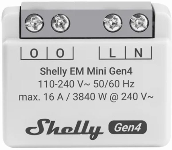 | Kurzbeschreibung | Shelly · Unterputz · "EM Mini Gen4" · Relais · max 8A · 1 Kanal · WLAN · Matter · Zigbee · Bluetooth |