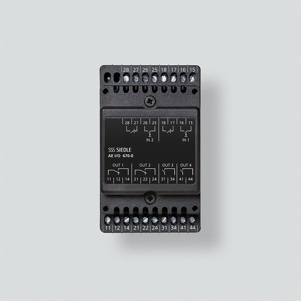 IP-Schaltaktor Erweiterung für Access im Schalttafel-Gehäuse mit 4 Ausgängen und 2 Eingängen.