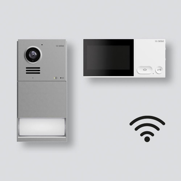 IQ Set Wi-Fi - Für den Bestand bestehend aus Video-Türstation und Video-Innenstation mit 10,9 cm (4,3 Zoll) Display für das System Siedle IQ mit den Funktionen Rufen, Sprechen, Sehen und Türöffnen.