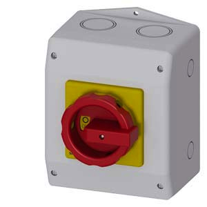 SENTRON, Lasttrennschalter 3LD, Not-Aus-Schalter, 3- polig, Iu: 63 A, Betriebsleistung / bei AC-23 A bei 400V: 22 kW, Isolierstoff- Kapselung für metrische Verschraubung, 1Ö, 1S, Drehantrieb, rot/gelb Haupt- und NOT-AUS-Schalter SENTRON 3LD2 für das sichere Abschalten von Lasten in vielen Bereichen, z.B. für Drehstrommotoren, Klima- und Lüftungsanlagen, in Be- und Verarbeitungsmaschinen des Maschinen- und Förderanlagenbaus, in der chemischen oder in der Nahrungsmittel- und Getränkeindustrie. Modularer Aufbau, schnelle einfache Montage von Hilfsschaltern, N-PE-Klemme oder 4. Pol. Optimale Netztrennung von 16 A bis 250 A durch Abschließbarkeit des Drehantriebes. Schutzart bis IP 65 mit gekapseltem Gehäusefür Anwendungen im Freien. Vielseitig und weltweit einsetzbar dank internationaler IEC-, UL-, CCC- sowie Schiffbau-Approbationen. Die Haupt- und NOT-AUS-Schalter 3LD sind in vielfältigen Varianten erhältlich für Frontbefestigung, Montageplatte, Hutschiene oder Verteilereinbau, wahlweise mit Direkt- oder Türkupplungs-Drehantrieb. Bei 3LD2 sind auch Varianten für Gleichstromanwendungen verfügbar. Haupt- und NOT-AUS-Schalter 3LD - Durchgängige Sicherheit für Anwender und Systeme.