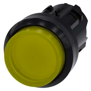 Leuchtdrucktaster, 22 mm, rund, Kunststoff, gelb, Druckknopf, hoch tastend Leuchtdrucktaster SIRIUS ACT zur Schaltung und Steuerung elektrischer Verbraucher. Unter dem Markennamen SIRIUS ACT bietet Siemens ein einzigartiges Portfolio an Befehls- und Meldegeräten mit weltweiten Produkt-Zulassungen in drei modernen Designreihen aus robustem Echtmetall und hochwertigem Kunststoff. Das innovative Aufschnappkonzept vereinfacht die Montage so weit, dass dafür nur eine Hand und kein Spezialwerkzeug erforderlich ist. Als Montagebohrungen genügen nutfreie Löcher, da bereits ein 100%iger Verdrehschutz integriert ist. Dank der durchgängig hohen Schutzart sind die robusten Geräte industrietauglich und für den Außeneinsatz geeignet. Sogar die Reinigung mit Hochdruckstrahl ist möglich. Weder Staub, Öle noch aggressive Laugen können den zuverlässigen Betrieb stören. Neben der Standardverdrahtung können die meisten Geräte auch über PROFINET, AS-Interface oder IO-Link an die Steuerung angebunden werden. Damit reduzieren Sie Ihren Verdrahtungsaufwand, minimieren Fehlerquellen und gewinnen mehr Flexibilität. Komfortabel unterstützt der grafische Online-Konfigurator bei Auswahl und Bestellung von Einzelgeräten, Gehäusen und Beschriftungen. Umfangreiche Dokumentation (z.B. Handbuch, 3D-Daten, Anschlussdiagramm) ist verfügbar. Lieferbare Ausführungen: mehrere Farben, beleuchtet/unbeleuchtet, mit/ohne Beschriftung, verrastende/tastende Betätigung, verschiedene Druckknopf- und Frontringhöhen. Hinweis: Einzelgerät, Halter und Module bitte extra bestellen. SIRIUS ACT - Performance in Action beim Befehlen und Melden. Einfach montiert, einfach stark, einfach perfekt.
