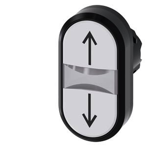 beleuchteter Doppeldrucktaster, 22 mm, rund, Kunststoff, weiß: Pfeil nach oben, weiß: Pfeil nach unten, Druckknöpfe, flach Doppeldrucktaster SIRIUS ACT zur Realisierung von zwei tastenden Schaltfunktionen in einer Befehlsstelle. Unter dem Markennamen SIRIUS ACT bietet Siemens ein einzigartiges Portfolio an Befehls- und Meldegeräten mit weltweiten Produkt-Zulassungen in drei modernen Designreihen aus robustem Echtmetall und hochwertigem Kunststoff. Das innovative Aufschnappkonzept vereinfacht die Montage so weit, dass dafür nur eine Hand und kein Spezialwerkzeug erforderlich ist. Als Montagebohrungen genügen nutfreie Löcher, dabereits ein 100%iger Verdrehschutz integriert ist. Dank der durchgängig hohen Schutzart sind die robusten Geräte industrietauglich und für den Außeneinsatz geeignet. Sogar die Reinigung mit Hochdruckstrahl ist möglich. Weder Staub, Öle noch aggressive Laugen können den zuverlässigen Betrieb stören. Neben der Standardverdrahtung können die meisten Geräte auch über PROFINET, AS-Interface oder IO-Link an die Steuerung angebunden werden. Damit reduzieren Sie Ihren Verdrahtungsaufwand, minimieren Fehlerquellen und gewinnen mehr Flexibilität. Komfortabel unterstützt der grafische Online-Konfigurator bei Auswahl und Bestellung von Einzelgeräten, Gehäusen und Beschriftungen. Umfangreiche Dokumentation (z.B. Handbuch, 3D-Daten, Anschlussdiagramm) ist verfügbar. Lieferbare Ausführungen: verschiedene Farbkombinationen, beleuchtet/unbeleuchtet, mit/ohne Beschriftung, verschiedene Druckknopfhöhen. Hinweis: Einzelgerät, Halter und Module bitte extra bestellen. SIRIUS ACT - Performance in Action beim Befehlen und Melden. Einfach montiert, einfach stark, einfach perfekt.