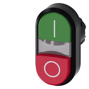 beleuchteter Doppeldrucktaster, 22 mm, rund, Kunststoff, grün: I, rot: O, Druckknöpfe, flach und hoch Doppeldrucktaster SIRIUS ACT zur Realisierung von zwei tastenden Schaltfunktionen in einer Befehlsstelle. Unter dem Markennamen SIRIUS ACT bietet Siemens ein einzigartiges Portfolio an Befehls- und Meldegeräten mit weltweiten Produkt-Zulassungen in drei modernen Designreihen aus robustem Echtmetall und hochwertigem Kunststoff. Das innovative Aufschnappkonzept vereinfacht die Montage so weit, dass dafür nur eine Hand und kein Spezialwerkzeug erforderlich ist. Als Montagebohrungen genügen nutfreie Löcher, dabereits ein 100%iger Verdrehschutz integriert ist. Dank der durchgängig hohen Schutzart sind die robusten Geräte industrietauglich und für den Außeneinsatz geeignet. Sogar die Reinigung mit Hochdruckstrahl ist möglich. Weder Staub, Öle noch aggressive Laugen können den zuverlässigen Betrieb stören. Neben der Standardverdrahtung können die meisten Geräte auch über PROFINET, AS-Interface oder IO-Link an die Steuerung angebunden werden. Damit reduzieren Sie Ihren Verdrahtungsaufwand, minimieren Fehlerquellen und gewinnen mehr Flexibilität. Komfortabel unterstützt der grafische Online-Konfigurator bei Auswahl und Bestellung von Einzelgeräten, Gehäusen und Beschriftungen. Umfangreiche Dokumentation (z.B. Handbuch, 3D-Daten, Anschlussdiagramm) ist verfügbar. Lieferbare Ausführungen: verschiedene Farbkombinationen, beleuchtet/unbeleuchtet, mit/ohne Beschriftung, verschiedene Druckknopfhöhen. Hinweis: Einzelgerät, Halter und Module bitte extra bestellen. SIRIUS ACT - Performance in Action beim Befehlen und Melden. Einfach montiert, einfach stark, einfach perfekt.