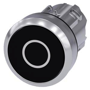 Drucktaster, 22 mm, rund, Metall, hochglanz, schwarz, Beschriftung: O, Druckknopf, flach tastend Drucktaster SIRIUS ACT zur Schaltung und Steuerung elektrischer Verbraucher. Unter dem Markennamen SIRIUS ACT bietet Siemens ein einzigartiges Portfolio an Befehls- und Meldegeräten mit weltweiten Produkt-Zulassungen in drei modernen Designreihen aus robustem Echtmetall und hochwertigem Kunststoff. Das innovative Aufschnappkonzept vereinfacht die Montage so weit, dass dafür nur eine Hand und kein Spezialwerkzeug erforderlich ist. Als Montagebohrungen genügen nutfreie Löcher, da bereits ein 100%iger Verdrehschutz integriert ist. Dank der durchgängig hohen Schutzart sind die robusten Geräte industrietauglich und für den Außeneinsatz geeignet. Sogar die Reinigung mit Hochdruckstrahl ist möglich. Weder Staub, Öle noch aggressive Laugen können den zuverlässigen Betrieb stören. Neben der Standardverdrahtung können die meisten Geräte auch über PROFINET, AS-Interface oder IO-Link an die Steuerung angebunden werden. Damit reduzieren Sie Ihren Verdrahtungsaufwand, minimieren Fehlerquellen und gewinnen mehr Flexibilität. Komfortabel unterstützt der grafische Online-Konfigurator bei Auswahl und Bestellung von Einzelgeräten, Gehäusen und Beschriftungen. Umfangreiche Dokumentation (z.B. Handbuch, 3D-Daten, Anschlussdiagramm) ist verfügbar. Lieferbare Ausführungen: mehrere Farben, beleuchtet/unbeleuchtet, mit/ohne Beschriftung, verrastende/tastende Betätigung, verschiedene Druckknopf- und Frontringhöhen. Hinweis: Einzelgerät, Halter und Module bitte extra bestellen. SIRIUS ACT - Performance in Action beim Befehlen und Melden. Einfach montiert, einfach stark, einfach perfekt.