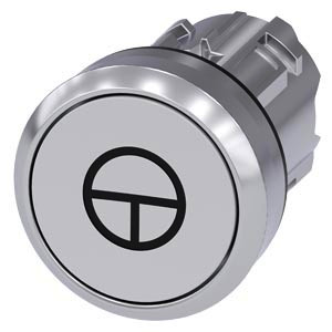 Drucktaster, 22 mm, rund, Metall, hochglanz, weiß, mit Symbol: Tippbetrieb, Druckknopf, flach tastend Drucktaster SIRIUS ACT zur Schaltung und Steuerung elektrischer Verbraucher. Unter dem Markennamen SIRIUS ACT bietet Siemens ein einzigartiges Portfolio an Befehls- und Meldegeräten mit weltweiten Produkt-Zulassungen in drei modernen Designreihen aus robustem Echtmetall und hochwertigem Kunststoff. Das innovative Aufschnappkonzept vereinfacht die Montage so weit, dass dafür nur eine Hand und kein Spezialwerkzeug erforderlich ist. Als Montagebohrungen genügen nutfreie Löcher, da bereits ein 100%iger Verdrehschutz integriert ist. Dank der durchgängig hohen Schutzart sind die robusten Geräte industrietauglich und für den Außeneinsatz geeignet. Sogar die Reinigung mit Hochdruckstrahl ist möglich. Weder Staub, Öle noch aggressive Laugen können den zuverlässigen Betrieb stören. Neben der Standardverdrahtung können die meisten Geräte auch über PROFINET, AS-Interface oder IO-Link an die Steuerung angebunden werden. Damit reduzieren Sie Ihren Verdrahtungsaufwand, minimieren Fehlerquellen und gewinnen mehr Flexibilität. Komfortabel unterstützt der grafische Online-Konfigurator bei Auswahl und Bestellung von Einzelgeräten, Gehäusen und Beschriftungen. Umfangreiche Dokumentation (z.B. Handbuch, 3D-Daten, Anschlussdiagramm) ist verfügbar. Lieferbare Ausführungen: mehrere Farben, beleuchtet/unbeleuchtet, mit/ohne Beschriftung, verrastende/tastende Betätigung, verschiedene Druckknopf- und Frontringhöhen. Hinweis: Einzelgerät, Halter und Module bitte extra bestellen. SIRIUS ACT - Performance in Action beim Befehlen und Melden. Einfach montiert, einfach stark, einfach perfekt.