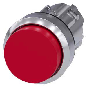 Drucktaster, 22 mm, rund, Metall, hochglanz, rot, Druckknopf, hoch, verrastend, Druckentriegelung Drucktaster SIRIUS ACT zur Schaltung und Steuerung elektrischer Verbraucher. Unter dem Markennamen SIRIUS ACT bietet Siemens ein einzigartiges Portfolio an Befehls- und Meldegeräten mit weltweiten Produkt-Zulassungen in drei modernen Designreihen aus robustem Echtmetall und hochwertigem Kunststoff. Das innovative Aufschnappkonzept vereinfacht die Montage so weit, dass dafür nur eine Hand und kein Spezialwerkzeug erforderlich ist. Als Montagebohrungen genügen nutfreie Löcher, da bereits ein 100%iger Verdrehschutz integriert ist. Dank der durchgängig hohen Schutzart sind die robusten Geräte industrietauglich und für den Außeneinsatz geeignet. Sogar die Reinigung mit Hochdruckstrahl ist möglich. Weder Staub, Öle noch aggressive Laugen können den zuverlässigen Betrieb stören. Neben der Standardverdrahtung können die meisten Geräte auch über PROFINET, AS-Interface oder IO-Link an die Steuerung angebunden werden. Damit reduzieren Sie Ihren Verdrahtungsaufwand, minimieren Fehlerquellen und gewinnen mehr Flexibilität. Komfortabel unterstützt der grafische Online-Konfigurator bei Auswahl und Bestellung von Einzelgeräten, Gehäusen und Beschriftungen. Umfangreiche Dokumentation (z.B. Handbuch, 3D-Daten, Anschlussdiagramm) ist verfügbar. Lieferbare Ausführungen: mehrere Farben, beleuchtet/unbeleuchtet, mit/ohne Beschriftung, verrastende/tastende Betätigung, verschiedene Druckknopf- und Frontringhöhen. Hinweis: Einzelgerät, Halter und Module bitte extra bestellen. SIRIUS ACT - Performance in Action beim Befehlen und Melden. Einfach montiert, einfach stark, einfach perfekt.