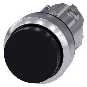 Drucktaster, 22 mm, rund, Metall, hochglanz, schwarz, Druckknopf, hoch tastend Drucktaster SIRIUS ACT zur Schaltung und Steuerung elektrischer Verbraucher. Unter dem Markennamen SIRIUS ACT bietet Siemens ein einzigartiges Portfolio an Befehls- und Meldegeräten mit weltweiten Produkt-Zulassungen in drei modernen Designreihen aus robustem Echtmetall und hochwertigem Kunststoff. Das innovative Aufschnappkonzept vereinfacht die Montage so weit, dass dafür nur eine Hand und kein Spezialwerkzeug erforderlich ist. Als Montagebohrungen genügen nutfreie Löcher, da bereits ein 100%iger Verdrehschutz integriert ist. Dank der durchgängig hohen Schutzart sind die robusten Geräte industrietauglich und für den Außeneinsatz geeignet. Sogar die Reinigung mit Hochdruckstrahl ist möglich. Weder Staub, Öle noch aggressive Laugen können den zuverlässigen Betrieb stören. Neben der Standardverdrahtung können die meisten Geräte auch über PROFINET, AS-Interface oder IO-Link an die Steuerung angebunden werden. Damit reduzieren Sie Ihren Verdrahtungsaufwand, minimieren Fehlerquellen und gewinnen mehr Flexibilität. Komfortabel unterstützt der grafische Online-Konfigurator bei Auswahl und Bestellung von Einzelgeräten, Gehäusen und Beschriftungen. Umfangreiche Dokumentation (z.B. Handbuch, 3D-Daten, Anschlussdiagramm) ist verfügbar. Lieferbare Ausführungen: mehrere Farben, beleuchtet/unbeleuchtet, mit/ohne Beschriftung, verrastende/tastende Betätigung, verschiedene Druckknopf- und Frontringhöhen. Hinweis: Einzelgerät, Halter und Module bitte extra bestellen. SIRIUS ACT - Performance in Action beim Befehlen und Melden. Einfach montiert, einfach stark, einfach perfekt.