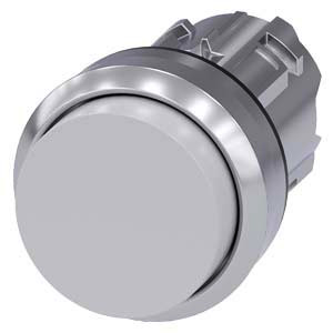 Drucktaster, 22 mm, rund, Metall, hochglanz, weiß, Druckknopf, hoch tastend Drucktaster SIRIUS ACT zur Schaltung und Steuerung elektrischer Verbraucher. Unter dem Markennamen SIRIUS ACT bietet Siemens ein einzigartiges Portfolio an Befehls- und Meldegeräten mit weltweiten Produkt-Zulassungen in drei modernen Designreihen aus robustem Echtmetall und hochwertigem Kunststoff. Das innovative Aufschnappkonzept vereinfacht die Montage so weit, dass dafür nur eine Hand und kein Spezialwerkzeug erforderlich ist. Als Montagebohrungen genügen nutfreie Löcher, da bereits ein 100%iger Verdrehschutz integriert ist. Dank der durchgängig hohen Schutzart sind die robusten Geräte industrietauglich und für den Außeneinsatz geeignet. Sogar die Reinigung mit Hochdruckstrahl ist möglich. Weder Staub, Öle noch aggressive Laugen können den zuverlässigen Betrieb stören. Neben der Standardverdrahtung können die meisten Geräte auch über PROFINET, AS-Interface oder IO-Link an die Steuerung angebunden werden. Damit reduzieren Sie Ihren Verdrahtungsaufwand, minimieren Fehlerquellen und gewinnen mehr Flexibilität. Komfortabel unterstützt der grafische Online-Konfigurator bei Auswahl und Bestellung von Einzelgeräten, Gehäusen und Beschriftungen. Umfangreiche Dokumentation (z.B. Handbuch, 3D-Daten, Anschlussdiagramm) ist verfügbar. Lieferbare Ausführungen: mehrere Farben, beleuchtet/unbeleuchtet, mit/ohne Beschriftung, verrastende/tastende Betätigung, verschiedene Druckknopf- und Frontringhöhen. Hinweis: Einzelgerät, Halter und Module bitte extra bestellen. SIRIUS ACT - Performance in Action beim Befehlen und Melden. Einfach montiert, einfach stark, einfach perfekt.