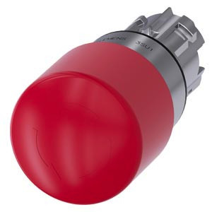 NOT-HALT-Pilzdrucktaster, 22 mm, rund, Metall, hochglanz, rot, 30 mm, zwangsläufige Verrastung, gemäß DIN EN ISO 13850, Drehentriegelung NOT-HALT-Pilzdrucktaster SIRIUS ACT nach DIN EN ISO 13850 zur Steuerung von sicherheitsgerichteten Anwendungen mit Überlistsicherheit. Unter dem Markennamen SIRIUS ACT bietet Siemens ein einzigartiges Portfolio an Befehls- und Meldegeräten mit weltweiten Produkt-Zulassungen in drei modernen Designreihen aus robustem Echtmetall und hochwertigem Kunststoff. Das innovative Aufschnappkonzept vereinfacht die Montage so weit, dass dafür nur eine Hand und kein Spezialwerkzeug erforderlich ist. Als Montagebohrungen genügen nutfreie Löcher, da bereits ein 100%iger Verdrehschutz integriert ist. Dank der durchgängig hohen Schutzart sind die robusten Geräte industrietauglich und für den Außeneinsatz geeignet. Sogar die Reinigung mit Hochdruckstrahl ist möglich. Weder Staub, Öle noch aggressive Laugen können den zuverlässigen Betrieb stören. Neben der Standardverdrahtung können die meisten Geräte auch über PROFINET, AS-Interface oder IO-Link an die Steuerung angebunden werden. Damit reduzieren Sie Ihren Verdrahtungsaufwand, minimieren Fehlerquellen und gewinnen mehr Flexibilität. Komfortabel unterstützt der grafische Online-Konfigurator bei Auswahl und Bestellung von Einzelgeräten, Gehäusen und Beschriftungen. Umfangreiche Dokumentation (z.B. Handbuch, 3D-Daten, Anschlussdiagramm) ist verfügbar. Lieferbare Ausführungen: 30/40/60 mm Pilz-Durchmesser, beleuchtet/unbeleuchtet, Zug-/Dreh-/Schlossentriegelung. Hinweis: Einzelgerät, Halter und Module bitte extra bestellen. SIRIUS ACT - Performance in Action beim Befehlen und Melden. Einfach montiert, einfach stark, einfach perfekt.