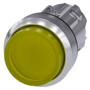 Leuchtdrucktaster, 22 mm, rund, Metall, hochglanz, gelb, Druckknopf, hoch, tastend Leuchtdrucktaster SIRIUS ACT zur Schaltung und Steuerung elektrischer Verbraucher. Unter dem Markennamen SIRIUS ACT bietet Siemens ein einzigartiges Portfolio an Befehls- und Meldegeräten mit weltweiten Produkt-Zulassungen in drei modernen Designreihen aus robustem Echtmetall und hochwertigem Kunststoff. Das innovative Aufschnappkonzept vereinfacht die Montage so weit, dass dafür nur eine Hand und kein Spezialwerkzeug erforderlich ist. Als Montagebohrungen genügen nutfreie Löcher, da bereits ein 100%iger Verdrehschutz integriert ist. Dank der durchgängig hohen Schutzart sind die robusten Geräte industrietauglich und für den Außeneinsatz geeignet. Sogar die Reinigung mit Hochdruckstrahl ist möglich. Weder Staub, Öle noch aggressive Laugen können den zuverlässigen Betrieb stören. Neben der Standardverdrahtung können die meisten Geräte auch über PROFINET, AS-Interface oder IO-Link an die Steuerung angebunden werden. Damit reduzieren Sie Ihren Verdrahtungsaufwand, minimieren Fehlerquellen und gewinnen mehr Flexibilität. Komfortabel unterstützt der grafische Online-Konfigurator bei Auswahl und Bestellung von Einzelgeräten, Gehäusen und Beschriftungen. Umfangreiche Dokumentation (z.B. Handbuch, 3D-Daten, Anschlussdiagramm) ist verfügbar. Lieferbare Ausführungen: mehrere Farben, beleuchtet/unbeleuchtet, mit/ohne Beschriftung, verrastende/tastende Betätigung, verschiedene Druckknopf- und Frontringhöhen. Hinweis: Einzelgerät, Halter und Module bitte extra bestellen. SIRIUS ACT - Performance in Action beim Befehlen und Melden. Einfach montiert, einfach stark, einfach perfekt.