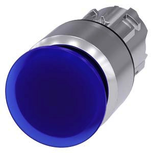 Leuchtpilzdrucktaster, 22 mm, rund, Metall, hochglanz, blau, 30 mm, verrastend, Zugentriegelung Pilzdrucktaster SIRIUS ACT mit großer Handhabe zur komfortablen Betätigung mit der ganzen Hand. Unter dem Markennamen SIRIUS ACT bietet Siemens ein einzigartiges Portfolio an Befehls- und Meldegeräten mit weltweiten Produkt-Zulassungen in drei modernen Designreihen aus robustem Echtmetall und hochwertigem Kunststoff. Das innovative Aufschnappkonzept vereinfacht die Montage so weit, dass dafür nur eine Hand und kein Spezialwerkzeug erforderlich ist. Als Montagebohrungen genügen nutfreie Löcher, da bereits ein 100%iger Verdrehschutz integriert ist. Dank der durchgängig hohen Schutzart sind die robusten Geräte industrietauglich und für den Außeneinsatz geeignet. Sogar die Reinigung mit Hochdruckstrahl ist möglich. Weder Staub, Öle noch aggressive Laugen können den zuverlässigen Betrieb stören. Neben der Standardverdrahtung können die meisten Geräte auch über PROFINET, AS-Interface oder IO-Link an die Steuerung angebunden werden. Damit reduzieren Sie Ihren Verdrahtungsaufwand, minimieren Fehlerquellen und gewinnen mehr Flexibilität. Komfortabel unterstützt der grafische Online-Konfigurator bei Auswahl und Bestellung von Einzelgeräten, Gehäusen und Beschriftungen. Umfangreiche Dokumentation (z.B. Handbuch, 3D-Daten, Anschlussdiagramm) ist verfügbar. Lieferbare Ausführungen: 30/40/60 mm Pilz-Durchmesser, mehrere Farben, beleuchtet/unbeleuchtet, verrastende/tastende Betätigung, Zug-/Drehentriegelung. Hinweis: Einzelgerät, Halter und Module bitte extra bestellen. SIRIUS ACT - Performance in Action beim Befehlen und Melden. Einfach montiert, einfach stark, einfach perfekt.