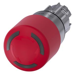 NOT-HALT-Pilzdrucktaster, beleuchtbar, 22 mm, rund, Metall, hochglanz, rot, 30 mm, zwangsläufige Verrastung, gemäß DIN EN ISO 13850, Drehentriegelung NOT-HALT-Pilzdrucktaster SIRIUS ACT nach DIN EN ISO 13850 zur Steuerung von sicherheitsgerichteten Anwendungen mit Überlistsicherheit. Unter dem Markennamen SIRIUS ACT bietet Siemens ein einzigartiges Portfolio an Befehls- und Meldegeräten mit weltweiten Produkt-Zulassungen in drei modernen Designreihen aus robustem Echtmetall und hochwertigem Kunststoff. Das innovative Aufschnappkonzept vereinfacht die Montage so weit, dass dafür nur eine Hand und kein Spezialwerkzeug erforderlich ist. Als Montagebohrungen genügen nutfreie Löcher, da bereits ein 100%iger Verdrehschutz integriert ist. Dank der durchgängig hohen Schutzart sind die robusten Geräte industrietauglich und für den Außeneinsatz geeignet. Sogar die Reinigung mit Hochdruckstrahl ist möglich. Weder Staub, Öle noch aggressive Laugen können den zuverlässigen Betrieb stören. Neben der Standardverdrahtung können die meisten Geräte auch über PROFINET, AS-Interface oder IO-Link an die Steuerung angebunden werden. Damit reduzieren Sie Ihren Verdrahtungsaufwand, minimieren Fehlerquellen und gewinnen mehr Flexibilität. Komfortabel unterstützt der grafische Online-Konfigurator bei Auswahl und Bestellung von Einzelgeräten, Gehäusen und Beschriftungen. Umfangreiche Dokumentation (z.B. Handbuch, 3D-Daten, Anschlussdiagramm) ist verfügbar. Lieferbare Ausführungen: 30/40/60 mm Pilz-Durchmesser, beleuchtet/unbeleuchtet, Zug-/Dreh-/Schlossentriegelung. Hinweis: Einzelgerät, Halter und Module bitte extra bestellen. SIRIUS ACT - Performance in Action beim Befehlen und Melden. Einfach montiert, einfach stark, einfach perfekt.