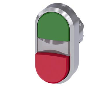 beleuchteter Doppeldrucktaster, 22 mm, rund, Metall, hochglanz, grün, rot, Druckknöpfe, flach und hoch Doppeldrucktaster SIRIUS ACT zur Realisierung von zwei tastenden Schaltfunktionen in einer Befehlsstelle. Unter dem Markennamen SIRIUS ACT bietet Siemens ein einzigartiges Portfolio an Befehls- und Meldegeräten mit weltweiten Produkt-Zulassungen in drei modernen Designreihen aus robustem Echtmetall und hochwertigem Kunststoff. Das innovative Aufschnappkonzept vereinfacht die Montage so weit, dass dafür nur eine Hand und kein Spezialwerkzeug erforderlich ist. Als Montagebohrungen genügen nutfreie Löcher, dabereits ein 100%iger Verdrehschutz integriert ist. Dank der durchgängig hohen Schutzart sind die robusten Geräte industrietauglich und für den Außeneinsatz geeignet. Sogar die Reinigung mit Hochdruckstrahl ist möglich. Weder Staub, Öle noch aggressive Laugen können den zuverlässigen Betrieb stören. Neben der Standardverdrahtung können die meisten Geräte auch über PROFINET, AS-Interface oder IO-Link an die Steuerung angebunden werden. Damit reduzieren Sie Ihren Verdrahtungsaufwand, minimieren Fehlerquellen und gewinnen mehr Flexibilität. Komfortabel unterstützt der grafische Online-Konfigurator bei Auswahl und Bestellung von Einzelgeräten, Gehäusen und Beschriftungen. Umfangreiche Dokumentation (z.B. Handbuch, 3D-Daten, Anschlussdiagramm) ist verfügbar. Lieferbare Ausführungen: verschiedene Farbkombinationen, beleuchtet/unbeleuchtet, mit/ohne Beschriftung, verschiedene Druckknopfhöhen. Hinweis: Einzelgerät, Halter und Module bitte extra bestellen. SIRIUS ACT - Performance in Action beim Befehlen und Melden. Einfach montiert, einfach stark, einfach perfekt.