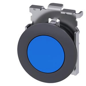 Drucktaster, 30 mm, rund, Metall, matt, blau, Frontring für flachen Einbau, tastend Drucktaster SIRIUS ACT zur Schaltung und Steuerung elektrischer Verbraucher. Unter dem Markennamen SIRIUS ACT bietet Siemens ein einzigartiges Portfolio an Befehls- und Meldegeräten mit weltweiten Produkt-Zulassungen in drei modernen Designreihen aus robustem Echtmetall und hochwertigem Kunststoff. Das innovative Aufschnappkonzept vereinfacht die Montage so weit, dass dafür nur eine Hand und kein Spezialwerkzeug erforderlich ist. Als Montagebohrungen genügen nutfreie Löcher, da bereits ein 100%iger Verdrehschutz integriert ist. Dank der durchgängig hohen Schutzart sind die robusten Geräte industrietauglich und für den Außeneinsatz geeignet. Sogar die Reinigung mit Hochdruckstrahl ist möglich. Weder Staub, Öle noch aggressive Laugen können den zuverlässigen Betrieb stören. Neben der Standardverdrahtung können die meisten Geräte auch über PROFINET, AS-Interface oder IO-Link an die Steuerung angebunden werden. Damit reduzieren Sie Ihren Verdrahtungsaufwand, minimieren Fehlerquellen und gewinnen mehr Flexibilität. Komfortabel unterstützt der grafische Online-Konfigurator bei Auswahl und Bestellung von Einzelgeräten, Gehäusen und Beschriftungen. Umfangreiche Dokumentation (z.B. Handbuch, 3D-Daten, Anschlussdiagramm) ist verfügbar. Lieferbare Ausführungen: mehrere Farben, beleuchtet/unbeleuchtet, mit/ohne Beschriftung, verrastende/tastende Betätigung, verschiedene Druckknopf- und Frontringhöhen. Hinweis: Einzelgerät, Halter und Module bitte extra bestellen. SIRIUS ACT - Performance in Action beim Befehlen und Melden. Einfach montiert, einfach stark, einfach perfekt.