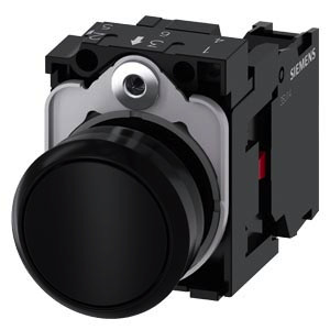 Drucktaster, 22 mm, rund, Kunststoff, schwarz, Druckknopf, flach, tastend, mit Halter 1Ö, Schraubanschluss Drucktaster SIRIUS ACT zur Schaltung und Steuerung elektrischer Verbraucher. Unter dem Markennamen SIRIUS ACT bietet Siemens ein einzigartiges Portfolio an Befehls- und Meldegeräten mit weltweiten Produkt-Zulassungen in drei modernen Designreihen aus robustem Echtmetall und hochwertigem Kunststoff. Das innovative Aufschnappkonzept vereinfacht die Montage so weit, dass dafür nur eine Hand und kein Spezialwerkzeug erforderlich ist. Als Montagebohrungen genügen nutfreie Löcher, da bereits ein 100%iger Verdrehschutz integriert ist. Dank der durchgängig hohen Schutzart sind die robusten Geräte industrietauglich und für den Außeneinsatz geeignet. Sogar die Reinigung mit Hochdruckstrahl ist möglich. Weder Staub, Öle noch aggressive Laugen können den zuverlässigen Betrieb stören. Neben der Standardverdrahtung können die meisten Geräte auch über PROFINET, AS-Interface oder IO-Link an die Steuerung angebunden werden. Damit reduzieren Sie Ihren Verdrahtungsaufwand, minimieren Fehlerquellen und gewinnen mehr Flexibilität. Komfortabel unterstützt der grafische Online-Konfigurator bei Auswahl und Bestellung von Einzelgeräten, Gehäusen und Beschriftungen. Umfangreiche Dokumentation (z.B. Handbuch, 3D-Daten, Anschlussdiagramm) ist verfügbar. Lieferbare Ausführungen: mehrere Farben, beleuchtet/unbeleuchtet, mit/ohne Beschriftung, verrastende/tastende Betätigung, verschiedene Druckknopf- und Frontringhöhen. Hinweis: Komplettgerät, Lieferung inklusive Halter und Module. SIRIUS ACT - Performance in Action beim Befehlen und Melden. Einfach montiert, einfach stark, einfach perfekt.