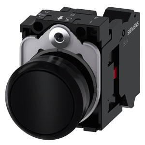 Drucktaster, 22 mm, rund, Kunststoff, schwarz, Druckknopf, flach, tastend, mit Halter 1Ö, Federzuganschluss Drucktaster SIRIUS ACT zur Schaltung und Steuerung elektrischer Verbraucher. Unter dem Markennamen SIRIUS ACT bietet Siemens ein einzigartiges Portfolio an Befehls- und Meldegeräten mit weltweiten Produkt-Zulassungen in drei modernen Designreihen aus robustem Echtmetall und hochwertigem Kunststoff. Das innovative Aufschnappkonzept vereinfacht die Montage so weit, dass dafür nur eine Hand und kein Spezialwerkzeug erforderlich ist. Als Montagebohrungen genügen nutfreie Löcher, da bereits ein 100%iger Verdrehschutz integriert ist. Dank der durchgängig hohen Schutzart sind die robusten Geräte industrietauglich und für den Außeneinsatz geeignet. Sogar die Reinigung mit Hochdruckstrahl ist möglich. Weder Staub, Öle noch aggressive Laugen können den zuverlässigen Betrieb stören. Neben der Standardverdrahtung können die meisten Geräte auch über PROFINET, AS-Interface oder IO-Link an die Steuerung angebunden werden. Damit reduzieren Sie Ihren Verdrahtungsaufwand, minimieren Fehlerquellen und gewinnen mehr Flexibilität. Komfortabel unterstützt der grafische Online-Konfigurator bei Auswahl und Bestellung von Einzelgeräten, Gehäusen und Beschriftungen. Umfangreiche Dokumentation (z.B. Handbuch, 3D-Daten, Anschlussdiagramm) ist verfügbar. Lieferbare Ausführungen: mehrere Farben, beleuchtet/unbeleuchtet, mit/ohne Beschriftung, verrastende/tastende Betätigung, verschiedene Druckknopf- und Frontringhöhen. Hinweis: Komplettgerät, Lieferung inklusive Halter und Module. SIRIUS ACT - Performance in Action beim Befehlen und Melden. Einfach montiert, einfach stark, einfach perfekt.