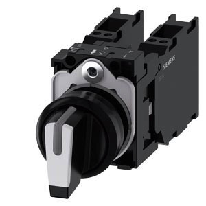 Knebelschalter, beleuchtbar, 22 mm, rund, Kunststoff, weiß, Knebel, kurz, 3 Schaltstellungen I-O-II, verrastend, 10:30h/12h/13:30h, mit Halter, 2x1S+1Ö, Federzuganschluss Knebelschalter SIRIUS ACT zur Schaltung und Steuerung elektrischer Verbraucher. Unter dem Markennamen SIRIUS ACT bietet Siemens ein einzigartiges Portfolio an Befehls- und Meldegeräten mit weltweiten Produkt-Zulassungen in drei modernen Designreihen aus robustem Echtmetall und hochwertigem Kunststoff. Das innovative Aufschnappkonzept vereinfacht die Montage so weit, dass dafür nur eine Hand und kein Spezialwerkzeug erforderlich ist. Als Montagebohrungen genügen nutfreie Löcher, da bereits ein 100%iger Verdrehschutz integriert ist. Dank der durchgängig hohen Schutzart sind die robusten Geräte industrietauglich und für den Außeneinsatz geeignet. Sogar die Reinigung mit Hochdruckstrahl ist möglich. Weder Staub, Öle noch aggressive Laugen können den zuverlässigen Betrieb stören. Neben der Standardverdrahtung können die meisten Geräte auch über PROFINET, AS-Interface oder IO-Link an die Steuerung angebunden werden. Damit reduzieren Sie Ihren Verdrahtungsaufwand, minimieren Fehlerquellen und gewinnen mehr Flexibilität. Komfortabel unterstützt der grafische Online-Konfigurator bei Auswahl und Bestellung von Einzelgeräten, Gehäusen und Beschriftungen. Umfangreiche Dokumentation (z.B. Handbuch, 3D-Daten, Anschlussdiagramm) ist verfügbar. Lieferbare Ausführungen: mehrere Farben, 2-4 Schaltstellungen, kurzer/langer Knebel oder Drehknopf, beleuchtet/unbeleuchtet (Beleuchtung auch nachrüstbar), verrastende/tastende Betätigung. Hinweis: Komplettgerät, Lieferung inklusive Halter und Module. SIRIUS ACT - Performance in Actionbeim Befehlen und Melden. Einfach montiert, einfach stark, einfach perfekt.
