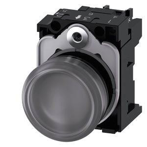 Leuchtmelder, 22 mm, rund, Kunststoff, klar, Linse, glatt, mit Halter, LED-Modul, mit integrierter LED AC/DC 24V, Schraubanschluss Leuchtmelder SIRIUS ACT zur Signalisierung von Schaltzuständen oder Störungen in Anlagen mit brillianter Leuchtkraft dank energieeffizienter LED-Technologie. Unter dem Markennamen SIRIUS ACT bietet Siemens ein einzigartiges Portfolio an Befehls- und Meldegeräten mit weltweiten Produkt-Zulassungen in drei modernen Designreihen aus robustem Echtmetall und hochwertigem Kunststoff. Das innovative Aufschnappkonzept vereinfacht die Montage so weit, dass dafür nur eine Hand und kein Spezialwerkzeug erforderlich ist. Als Montagebohrungen genügen nutfreie Löcher, da bereits ein 100%iger Verdrehschutz integriert ist. Dank der durchgängig hohen Schutzart sind die robusten Geräte industrietauglich und für den Außeneinsatz geeignet. Sogar die Reinigung mit Hochdruckstrahl ist möglich. Weder Staub, Öle noch aggressive Laugen können den zuverlässigen Betrieb stören. Neben der Standardverdrahtung können die meisten Geräte auch über PROFINET, AS-Interface oder IO-Link an die Steuerung angebunden werden. Damit reduzieren Sie Ihren Verdrahtungsaufwand, minimieren Fehlerquellen und gewinnen mehr Flexibilität. Komfortabel unterstützt der grafische Online-Konfigurator bei Auswahl und Bestellung von Einzelgeräten, Gehäusen und Beschriftungen. Umfangreiche Dokumentation (z.B. Handbuch, 3D-Daten, Anschlussdiagramm) ist verfügbar. Lieferbare Ausführungen: mehrere Farben, verschiedene Spannungsvarianten. Hinweis: Komplettgerät, Lieferung inklusive Halter und Module. SIRIUS ACT - Performance in Action beim Befehlen und Melden. Einfach montiert, einfach stark, einfach perfekt.