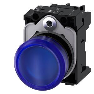 Leuchtmelder, 22 mm, rund, Kunststoff, blau, Linse, glatt, mit Halter, LED-Modul mit integrierter LED AC 110 V, Schraubanschluss Leuchtmelder SIRIUS ACT zur Signalisierung von Schaltzuständen oder Störungen in Anlagen mit brillianter Leuchtkraft dank energieeffizienter LED-Technologie. Unter dem Markennamen SIRIUS ACT bietet Siemens ein einzigartiges Portfolio an Befehls- und Meldegeräten mit weltweiten Produkt-Zulassungen in drei modernen Designreihen aus robustem Echtmetall und hochwertigem Kunststoff. Das innovative Aufschnappkonzept vereinfacht die Montage so weit, dass dafür nur eine Hand und kein Spezialwerkzeug erforderlich ist. Als Montagebohrungen genügen nutfreie Löcher, da bereits ein 100%iger Verdrehschutz integriert ist. Dank der durchgängig hohen Schutzart sind die robusten Geräte industrietauglich und für den Außeneinsatz geeignet. Sogar die Reinigung mit Hochdruckstrahl ist möglich. Weder Staub, Öle noch aggressive Laugen können den zuverlässigen Betrieb stören. Neben der Standardverdrahtung können die meisten Geräte auch über PROFINET, AS-Interface oder IO-Link an die Steuerung angebunden werden. Damit reduzieren Sie Ihren Verdrahtungsaufwand, minimieren Fehlerquellen und gewinnen mehr Flexibilität. Komfortabel unterstützt der grafische Online-Konfigurator bei Auswahl und Bestellung von Einzelgeräten, Gehäusen und Beschriftungen. Umfangreiche Dokumentation (z.B. Handbuch, 3D-Daten, Anschlussdiagramm) ist verfügbar. Lieferbare Ausführungen: mehrere Farben, verschiedene Spannungsvarianten. Hinweis: Komplettgerät, Lieferung inklusive Halter und Module. SIRIUS ACT - Performance in Action beim Befehlen und Melden. Einfach montiert, einfach stark, einfach perfekt.