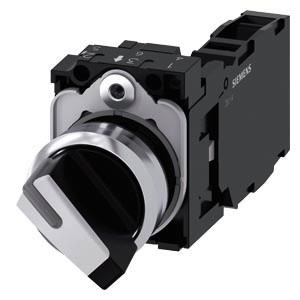 Knebelschalter, beleuchtbar, 22 mm, rund, Metall, hochglanz, weiß, Knebel, kurz, 2 Schaltstellungen O-I, verrastend, Schaltwinkel 90°, 10:30h/13:30h, mit Halter, 1S+1Ö, Schraubanschluss Knebelschalter SIRIUS ACT zur Schaltung und Steuerung elektrischer Verbraucher. Unter dem Markennamen SIRIUS ACT bietet Siemens ein einzigartiges Portfolio an Befehls- und Meldegeräten mit weltweiten Produkt-Zulassungen in drei modernen Designreihen aus robustem Echtmetall und hochwertigem Kunststoff. Das innovative Aufschnappkonzept vereinfacht die Montage so weit, dass dafür nur eine Hand und kein Spezialwerkzeug erforderlich ist. Als Montagebohrungen genügen nutfreie Löcher, da bereits ein 100%iger Verdrehschutz integriert ist. Dank der durchgängig hohen Schutzart sind die robusten Geräte industrietauglich und für den Außeneinsatz geeignet. Sogar die Reinigung mit Hochdruckstrahl ist möglich. Weder Staub, Öle noch aggressive Laugen können den zuverlässigen Betrieb stören. Neben der Standardverdrahtung können die meisten Geräte auch über PROFINET, AS-Interface oder IO-Link an die Steuerung angebunden werden. Damit reduzieren Sie Ihren Verdrahtungsaufwand, minimieren Fehlerquellen und gewinnen mehr Flexibilität. Komfortabel unterstützt der grafische Online-Konfigurator bei Auswahl und Bestellung von Einzelgeräten, Gehäusen und Beschriftungen. Umfangreiche Dokumentation (z.B. Handbuch, 3D-Daten, Anschlussdiagramm) ist verfügbar. Lieferbare Ausführungen: mehrere Farben, 2-4 Schaltstellungen, kurzer/langer Knebel oder Drehknopf, beleuchtet/unbeleuchtet (Beleuchtung auch nachrüstbar), verrastende/tastende Betätigung. Hinweis: Komplettgerät, Lieferung inklusive Halter und Module. SIRIUS ACT - Performance in Actionbeim Befehlen und Melden. Einfach montiert, einfach stark, einfach perfekt.