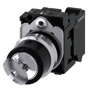 Schlüsselschalter RONIS, 22 mm, rund, Metall, hochglanz, Schließ-Nr. SB30, mit 2 Schlüsseln, 2 Schaltstellungen O-I, verrastend, Schaltwinkel 90°, 10:30h/13:30h, Schlüsselabzug O+I, mit Halter, 1S, Federzuganschluss, mögliche Sonderschließungen: SB31, 421, 455 Schlüsselschalter SIRIUS ACT für einen höheren Anspruch an Zugangssicherheit. Unter dem Markennamen SIRIUS ACT bietet Siemens ein einzigartiges Portfolio an Befehls- und Meldegeräten mit weltweiten Produkt-Zulassungen in drei modernen Designreihen aus robustem Echtmetall und hochwertigem Kunststoff. Das innovative Aufschnappkonzept vereinfacht die Montage so weit, dass dafür nur eine Hand und kein Spezialwerkzeug erforderlich ist. Als Montagebohrungen genügen nutfreie Löcher, da bereits ein 100%iger Verdrehschutz integriert ist. Dank der durchgängig hohen Schutzart sind die robusten Geräte industrietauglich und für den Außeneinsatz geeignet. Sogar die Reinigung mit Hochdruckstrahl ist möglich. Weder Staub, Öle noch aggressive Laugen können den zuverlässigen Betrieb stören. Neben der Standardverdrahtung können die meisten Geräte auch über PROFINET, AS-Interface oder IO-Link an die Steuerung angebunden werden. Damit reduzieren Sie Ihren Verdrahtungsaufwand, minimieren Fehlerquellen und gewinnen mehr Flexibilität. Komfortabel unterstützt der grafische Online-Konfigurator bei Auswahl und Bestellung von Einzelgeräten, Gehäusen und Beschriftungen. Umfangreiche Dokumentation (z.B. Handbuch, 3D-Daten, Anschlussdiagramm) ist verfügbar. Lieferbare Ausführungen: verschiedene Schließsysteme (Siemens, C, Siemens, B, RONIS, OMR), 2/3 Schaltstellungen, verrastende/tastende Betätigung, verschiedene Schlüsselabzugstellungen. Hinweis: Komplettgerät, Lieferung inklusive Halter und Module. SIRIUS ACT - Performance in Action beim Befehlen und Melden. Einfach montiert, einfach stark, einfach perfekt.