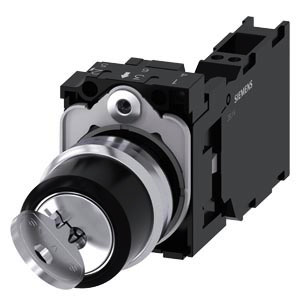 Schlüsselschalter RONIS, 22 mm, rund, Metall, hochglanz, Schließ-Nr. SB30, mit 2 Schlüsseln, 2 Schaltstellungen O-I, verrastend, Schaltwinkel 90°, 10:30h/13:30h, Schlüsselabzug O+I, mit Halter, 1S+1Ö, Federzuganschluss, mögliche Sonderschließungen: SB31, 421, 455 Schlüsselschalter SIRIUS ACT für einen höheren Anspruch an Zugangssicherheit. Unter dem Markennamen SIRIUS ACT bietet Siemens ein einzigartiges Portfolio an Befehls- und Meldegeräten mit weltweiten Produkt-Zulassungen in drei modernen Designreihen aus robustem Echtmetall und hochwertigem Kunststoff. Das innovative Aufschnappkonzept vereinfacht die Montage so weit, dass dafür nur eine Hand und kein Spezialwerkzeug erforderlich ist. Als Montagebohrungen genügen nutfreie Löcher, da bereits ein 100%iger Verdrehschutz integriert ist. Dank der durchgängig hohen Schutzart sind die robusten Geräte industrietauglich und für den Außeneinsatz geeignet. Sogar die Reinigung mit Hochdruckstrahl ist möglich. Weder Staub, Öle noch aggressive Laugen können den zuverlässigen Betrieb stören. Neben der Standardverdrahtung können die meisten Geräte auch über PROFINET, AS-Interface oder IO-Link an die Steuerung angebunden werden. Damit reduzieren Sie Ihren Verdrahtungsaufwand, minimieren Fehlerquellen und gewinnen mehr Flexibilität. Komfortabel unterstützt der grafische Online-Konfigurator bei Auswahl und Bestellung von Einzelgeräten, Gehäusen und Beschriftungen. Umfangreiche Dokumentation (z.B. Handbuch, 3D-Daten, Anschlussdiagramm) ist verfügbar. Lieferbare Ausführungen: verschiedene Schließsysteme (Siemens, C, Siemens, B, RONIS, OMR), 2/3 Schaltstellungen, verrastende/tastende Betätigung, verschiedene Schlüsselabzugstellungen. Hinweis: Komplettgerät, Lieferung inklusive Halter und Module. SIRIUS ACT - Performance in Action beim Befehlen und Melden. Einfach montiert, einfach stark, einfach perfekt.