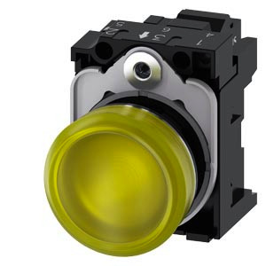 Leuchtmelder, 22 mm, rund, Metall, hochglanz, gelb, Linse, glatt, mit Halter, LED-Modul mit integrierter LED AC 230 V, Federzuganschluss Leuchtmelder SIRIUS ACT zur Signalisierung von Schaltzuständen oder Störungen in Anlagen mit brillianter Leuchtkraft dank energieeffizienter LED-Technologie. Unter dem Markennamen SIRIUS ACT bietet Siemens ein einzigartiges Portfolio an Befehls- und Meldegeräten mit weltweiten Produkt-Zulassungen in drei modernen Designreihen aus robustem Echtmetall und hochwertigem Kunststoff. Das innovative Aufschnappkonzept vereinfacht die Montage so weit, dass dafür nur eine Hand und kein Spezialwerkzeug erforderlich ist. Als Montagebohrungen genügen nutfreie Löcher, da bereits ein 100%iger Verdrehschutz integriert ist. Dank der durchgängig hohen Schutzart sind die robusten Geräte industrietauglich und für den Außeneinsatz geeignet. Sogar die Reinigung mit Hochdruckstrahl ist möglich. Weder Staub, Öle noch aggressive Laugen können den zuverlässigen Betrieb stören. Neben der Standardverdrahtung können die meisten Geräte auch über PROFINET, AS-Interface oder IO-Link an die Steuerung angebunden werden. Damit reduzieren Sie Ihren Verdrahtungsaufwand, minimieren Fehlerquellen und gewinnen mehr Flexibilität. Komfortabel unterstützt der grafische Online-Konfigurator bei Auswahl und Bestellung von Einzelgeräten, Gehäusen und Beschriftungen. Umfangreiche Dokumentation (z.B. Handbuch, 3D-Daten, Anschlussdiagramm) ist verfügbar. Lieferbare Ausführungen: mehrere Farben, verschiedene Spannungsvarianten. Hinweis: Komplettgerät, Lieferung inklusive Halter und Module. SIRIUS ACT - Performance in Action beim Befehlen und Melden. Einfach montiert, einfach stark, einfach perfekt.