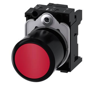 Drucktaster, kompakt, mit verlängertem Hub (12 mm), 22 mm, rund, Kunststoff, rot, Druckknopf, flach, tastend, mit Halter Drucktaster SIRIUS ACT zur Schaltung und Steuerung elektrischer Verbraucher. Unter dem Markennamen SIRIUS ACT bietet Siemens ein einzigartiges Portfolio an Befehls- und Meldegeräten mit weltweiten Produkt-Zulassungen in drei modernen Designreihen aus robustem Echtmetall und hochwertigem Kunststoff. Das innovative Aufschnappkonzept vereinfacht die Montage so weit, dass dafür nur eine Hand und kein Spezialwerkzeug erforderlich ist. Als Montagebohrungen genügen nutfreie Löcher, da bereits ein 100%iger Verdrehschutz integriert ist. Dank der durchgängig hohen Schutzart sind die robusten Geräte industrietauglich und für den Außeneinsatz geeignet. Sogar die Reinigung mit Hochdruckstrahl ist möglich. Weder Staub, Öle noch aggressive Laugen können den zuverlässigen Betrieb stören. Neben der Standardverdrahtung können die meisten Geräte auch über PROFINET, AS-Interface oder IO-Link an die Steuerung angebunden werden. Damit reduzieren Sie Ihren Verdrahtungsaufwand, minimieren Fehlerquellen und gewinnen mehr Flexibilität. Komfortabel unterstützt der grafische Online-Konfigurator bei Auswahl und Bestellung von Einzelgeräten, Gehäusen und Beschriftungen. Umfangreiche Dokumentation (z.B. Handbuch, 3D-Daten, Anschlussdiagramm) ist verfügbar. Lieferbare Ausführungen: mehrere Farben, beleuchtet/unbeleuchtet, mit/ohne Beschriftung, verrastende/tastende Betätigung, verschiedene Druckknopf- und Frontringhöhen. Hinweis: Kompaktgerät mit mechanischer Schaltfunktion, kann nur mit Verlängerungsstößel (3SU1900-0KG10-0AA0) eingesetzt werden. Lieferung inklusive Halter. SIRIUS ACT - Performance in Action beim Befehlen und Melden. Einfach montiert, einfach stark, einfach perfekt.