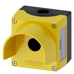 Gehäuse für Befehlsgeräte, 22 mm, rund, Gehäusematerial Kunststoff, Gehäuseoberteil gelb, 1 Befehlsstelle Kunststoff, mit Schutzkragen, ohne Bestückung Gehäuse SIRIUS ACT für die Montage der 22,5 mm Befehls- und Meldegeräte bei räumlich getrennter Anordnung von Steuereinheiten und Schaltschränken. Unter dem Markennamen SIRIUS ACT bietet Siemens ein einzigartiges Portfolio an Befehls- und Meldegeräten mit weltweiten Produkt-Zulassungen in drei modernen Designreihen aus robustem Echtmetall und hochwertigem Kunststoff. Das innovative Aufschnappkonzept vereinfacht die Montage so weit, dass dafür nur eine Hand und kein Spezialwerkzeug erforderlich ist. Als Montagebohrungen genügen nutfreie Löcher, da bereits ein 100%iger Verdrehschutz integriert ist. Dank der durchgängig hohen Schutzart sind die robusten Geräte industrietauglich und für den Außeneinsatz geeignet. Sogar die Reinigung mit Hochdruckstrahl ist möglich. Weder Staub, Öle noch aggressive Laugen können den zuverlässigen Betrieb stören. Neben der Standardverdrahtung können die meisten Geräte auch über PROFINET, AS-Interface oder IO-Link an die Steuerung angebunden werden. Damit reduzieren Sie Ihren Verdrahtungsaufwand, minimieren Fehlerquellen und gewinnen mehr Flexibilität. Komfortabel unterstützt der grafische Online-Konfigurator bei Auswahl und Bestellung von Einzelgeräten, Gehäusen und Beschriftungen. Umfangreiche Dokumentation (z.B. Handbuch, 3D-Daten, Anschlussdiagramm) ist verfügbar. Lieferbare Ausführungen: gelb/grau, Kunststoff/Metall, 1-6 Befehlstellen, Leergehäuse/Vorbestückung, wahlweise mit AS-Interface-Anbindung. SIRIUS ACT - Performance in Action beim Befehlen und Melden. Einfach montiert, einfach stark, einfach perfekt.