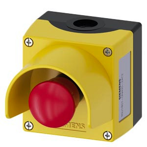 Gehäuse für Befehlsgeräte, 22 mm, rund, Gehäusematerial Kunststoff, Gehäuseoberteil gelb, 1 Befehlsstelle Kunststoff, mit Schutzkragen, A=NOT-HALT-Pilzdrucktaster rot, 40 mm, drehentriegelt, 1Ö, Schraubanschluss, Bodenbefestigung, oben und unten je 1xM20 Gehäuse SIRIUS ACT für die Montage der 22,5 mm Befehls- und Meldegeräte bei räumlich getrennter Anordnung von Steuereinheiten und Schaltschränken. Unter dem Markennamen SIRIUS ACT bietet Siemens ein einzigartiges Portfolio an Befehls- und Meldegeräten mit weltweiten Produkt-Zulassungen in drei modernen Designreihen aus robustem Echtmetall und hochwertigem Kunststoff. Das innovative Aufschnappkonzept vereinfacht die Montage so weit, dass dafür nur eine Hand und kein Spezialwerkzeug erforderlich ist. Als Montagebohrungen genügen nutfreie Löcher, da bereits ein 100%iger Verdrehschutz integriert ist. Dank der durchgängig hohen Schutzart sind die robusten Geräte industrietauglich und für den Außeneinsatz geeignet. Sogar die Reinigung mit Hochdruckstrahl ist möglich. Weder Staub, Öle noch aggressive Laugen können den zuverlässigen Betrieb stören. Neben der Standardverdrahtung können die meisten Geräte auch über PROFINET, AS-Interface oder IO-Link an die Steuerung angebunden werden. Damit reduzieren Sie Ihren Verdrahtungsaufwand, minimieren Fehlerquellen und gewinnen mehr Flexibilität. Komfortabel unterstützt der grafische Online-Konfigurator bei Auswahl und Bestellung von Einzelgeräten, Gehäusen und Beschriftungen. Umfangreiche Dokumentation (z.B. Handbuch, 3D-Daten, Anschlussdiagramm) ist verfügbar. Lieferbare Ausführungen: gelb/grau, Kunststoff/Metall, 1-6 Befehlstellen, Leergehäuse/Vorbestückung, wahlweise mit AS-Interface-Anbindung. SIRIUS ACT - Performance in Action beim Befehlen und Melden. Einfach montiert, einfach stark, einfach perfekt.