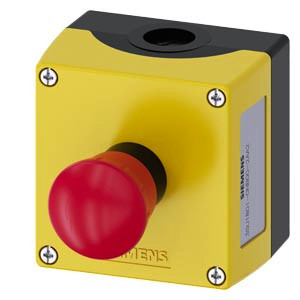 Gehäuse für Befehlsgeräte, 22 mm, rund, Gehäusematerial Kunststoff, Gehäuseoberteil gelb, 1 Befehlsstelle Kunststoff, Befehlsstelle mittig, A=NOT-HALT-Pilzdrucktaster rot, 40 mm, drehentriegelt, 1Ö, 1Ö, Schraubanschluss, Bodenbefestigung, oben und unten je 1xM20 Gehäuse SIRIUS ACT für die Montage der 22,5 mm Befehls- und Meldegeräte bei räumlich getrennter Anordnung von Steuereinheiten und Schaltschränken. Unter dem Markennamen SIRIUS ACT bietet Siemens ein einzigartiges Portfolio an Befehls- und Meldegeräten mit weltweiten Produkt-Zulassungen in drei modernen Designreihen aus robustem Echtmetall und hochwertigem Kunststoff. Das innovative Aufschnappkonzept vereinfacht die Montage so weit, dass dafür nur eine Hand und kein Spezialwerkzeug erforderlich ist. Als Montagebohrungen genügen nutfreie Löcher, da bereits ein 100%iger Verdrehschutz integriert ist. Dank der durchgängig hohen Schutzart sind die robusten Geräte industrietauglich und für den Außeneinsatz geeignet. Sogar die Reinigung mit Hochdruckstrahl ist möglich. Weder Staub, Öle noch aggressive Laugen können den zuverlässigen Betrieb stören. Neben der Standardverdrahtung können die meisten Geräte auch über PROFINET, AS-Interface oder IO-Link an die Steuerung angebunden werden. Damit reduzieren Sie Ihren Verdrahtungsaufwand, minimieren Fehlerquellen und gewinnen mehr Flexibilität. Komfortabel unterstützt der grafische Online-Konfigurator bei Auswahl und Bestellung von Einzelgeräten, Gehäusen und Beschriftungen. Umfangreiche Dokumentation (z.B. Handbuch, 3D-Daten, Anschlussdiagramm) ist verfügbar. Lieferbare Ausführungen: gelb/grau, Kunststoff/Metall, 1-6 Befehlstellen, Leergehäuse/Vorbestückung, wahlweise mit AS-Interface-Anbindung. SIRIUS ACT - Performance in Action beim Befehlen und Melden. Einfach montiert, einfach stark, einfach perfekt.