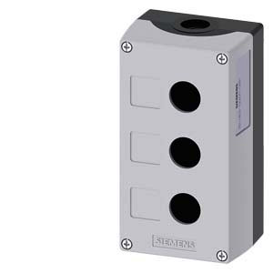 Gehäuse für Befehlsgeräte, 22 mm, rund, Gehäusematerial Kunststoff, Gehäuseoberteil grau, 3 Befehlsstellen Kunststoff, Vertiefung für Schilder, ohne Bestückung Gehäuse SIRIUS ACT für die Montage der 22,5 mm Befehls- und Meldegeräte bei räumlich getrennter Anordnung von Steuereinheiten und Schaltschränken. Unter dem Markennamen SIRIUS ACT bietet Siemens ein einzigartiges Portfolio an Befehls- und Meldegeräten mit weltweiten Produkt-Zulassungen in drei modernen Designreihen aus robustem Echtmetall und hochwertigem Kunststoff. Das innovative Aufschnappkonzept vereinfacht die Montage so weit, dass dafür nur eine Hand und kein Spezialwerkzeug erforderlich ist. Als Montagebohrungen genügen nutfreie Löcher, da bereits ein 100%iger Verdrehschutz integriert ist. Dank der durchgängig hohen Schutzart sind die robusten Geräte industrietauglich und für den Außeneinsatz geeignet. Sogar die Reinigung mit Hochdruckstrahl ist möglich. Weder Staub, Öle noch aggressive Laugen können den zuverlässigen Betrieb stören. Neben der Standardverdrahtung können die meisten Geräte auch über PROFINET, AS-Interface oder IO-Link an die Steuerung angebunden werden. Damit reduzieren Sie Ihren Verdrahtungsaufwand, minimieren Fehlerquellen und gewinnen mehr Flexibilität. Komfortabel unterstützt der grafische Online-Konfigurator bei Auswahl und Bestellung von Einzelgeräten, Gehäusen und Beschriftungen. Umfangreiche Dokumentation (z.B. Handbuch, 3D-Daten, Anschlussdiagramm) ist verfügbar. Lieferbare Ausführungen: gelb/grau, Kunststoff/Metall, 1-6 Befehlstellen, Leergehäuse/Vorbestückung, wahlweise mit AS-Interface-Anbindung. SIRIUS ACT - Performance in Action beim Befehlen und Melden. Einfach montiert, einfach stark, einfach perfekt.