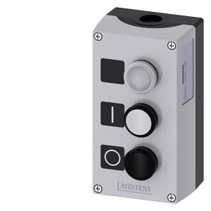 Gehäuse für Befehlsgeräte, 22 mm, rund, Gehäusematerial Kunststoff, Gehäuseoberteil grau, 3 Befehlsstellen Kunststoff, C=Leuchtmelder klar, Schild, LED 24 V, Schraubanschluss, B=Drucktaster weiß, Schild: I, 1S, Schraubanschluss, A=Drucktaster schwarz,Schild:O, 1Ö, Schraubanschluss, Bodenbefestigung, oben und unten je 1xM20, Schilder beigelegt Gehäuse SIRIUS ACT für die Montage der 22,5 mm Befehls- und Meldegeräte bei räumlich getrennter Anordnung von Steuereinheiten und Schaltschränken. Unter dem Markennamen SIRIUS ACT bietet Siemens ein einzigartiges Portfolio an Befehls- und Meldegeräten mit weltweiten Produkt-Zulassungen in drei modernen Designreihen aus robustem Echtmetall und hochwertigem Kunststoff. Das innovative Aufschnappkonzept vereinfacht die Montage so weit, dass dafür nur eine Hand und kein Spezialwerkzeug erforderlich ist. Als Montagebohrungen genügen nutfreie Löcher, da bereits ein 100%iger Verdrehschutz integriert ist. Dank der durchgängig hohen Schutzart sind die robusten Geräte industrietauglich und für den Außeneinsatz geeignet. Sogar die Reinigung mit Hochdruckstrahl ist möglich. Weder Staub, Öle noch aggressive Laugen können den zuverlässigen Betrieb stören. Neben der Standardverdrahtung können die meisten Geräte auch über PROFINET, AS-Interface oder IO-Link an die Steuerung angebunden werden. Damit reduzieren Sie Ihren Verdrahtungsaufwand, minimieren Fehlerquellen und gewinnen mehr Flexibilität. Komfortabel unterstützt der grafische Online-Konfigurator bei Auswahl und Bestellung von Einzelgeräten, Gehäusen und Beschriftungen. Umfangreiche Dokumentation (z.B. Handbuch, 3D-Daten, Anschlussdiagramm) ist verfügbar. Lieferbare Ausführungen: gelb/grau, Kunststoff/Metall, 1-6 Befehlstellen, Leergehäuse/Vorbestückung, wahlweise mit AS-Interface-Anbindung. SIRIUS ACT - Performance in Action beim Befehlen und Melden. Einfach montiert, einfach stark, einfach perfekt.