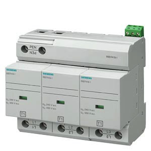 Blitzstromableiter Typ 1 Anforderungsklasse B, Uc 350V Schutzbausteine steckbar 3-polig, 3+0 Schaltung für TNC-Systeme mit Fernanzeige Überspannungsschutzgeräte zum Schutz vor Überspannungen in elektrischen Anlagen. Die Überspannungsschutzgeräte von Siemens, als wichtiger Bestandteil der SENTRON Schutzkomponenten für die Elektroinstallation, bieten effektiven Schutz bei Blitz und Überspannungen infolge atmosphärischer Einflüsse oder Schaltvorgängen. Komfortable Montage- und Anschlusstechnik sowie ein durchgängiges Design sind die Kennzeichen der Gerätefamilie. Ob für Infrastruktur oder für industrielle Anforderungen, Siemens bietet Überspannungsschutzgeräte für alle Anwendungen und jedes Einsatzgebiet. Die Siemens Überspannungsschutzgeräte zeichnen sich vor allem aus durch: 1. Effektiver Investitions- und Anlagenschutz vor Blitz und Überspannungen. 2. Für jeden Anwendungsfall der richtige Blitz-/ und Überspannungsschutz (Typ1 bis 3). 3. Fernmeldekontakt zum externen Upload der Zustandsanzeige. 4. Zuverlässige Sicherheit bei der Installation dank standardmäßig enthaltenem Umgreif- und Berührungsschutz. 5. Werkzeugloses Lösen von der Hutschiene. 6. Klar ersichtliche Fehleranzeige. 7. Datamatrix-Code vorne am Gerät bietet schnell und einfach alle Infos rund um den Blitz- und Überspannungsschutz. 8. Optimale Technik für Ihre Sicherheit - nur von Siemens.