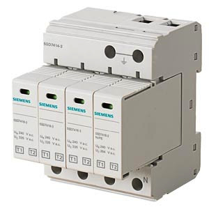 Blitzstromableiter T1/T2, Un 240/400V, Uc 335/264V A.C., Schutzbausteine steckbar, 3+1 Schaltung (TN-S, TT), Breite 72mm Überspannungsschutzgeräte zum Schutz vor Überspannungen in elektrischen Anlagen. Die Überspannungsschutzgeräte von Siemens, als wichtiger Bestandteil der SENTRON Schutzkomponenten für die Elektroinstallation, bieten effektiven Schutz bei Blitz und Überspannungen infolge atmosphärischer Einflüsse oder Schaltvorgängen. Komfortable Montage- und Anschlusstechnik sowie ein durchgängiges Design sind die Kennzeichen der Gerätefamilie. Ob für Infrastruktur oder für industrielle Anforderungen, Siemens bietet Überspannungsschutzgeräte für alle Anwendungen und jedes Einsatzgebiet. Die Siemens Überspannungsschutzgeräte zeichnen sich vor allem aus durch: 1. Effektiver Investitions- und Anlagenschutz vor Blitz und Überspannungen. 2. Für jeden Anwendungsfall der richtige Blitz-/ und Überspannungsschutz (Typ1 bis 3). 3. Fernmeldekontakt zum externen Upload der Zustandsanzeige. 4. Zuverlässige Sicherheit bei der Installation dank standardmäßig enthaltenem Umgreif- und Berührungsschutz. 5. Werkzeugloses Lösen von der Hutschiene. 6. Klar ersichtliche Fehleranzeige. 7. Datamatrix-Code vorne am Gerät bietet schnell und einfach alle Infos rund um den Blitz- und Überspannungsschutz. 8. Optimale Technik für Ihre Sicherheit - nur von Siemens.