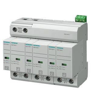 Kombi-Ableiter Typ 1+2 Anforderungsklasse B+C, Uc 350V Schutzbausteine steckbar 3-polig, 3+0 Schaltung für TNC-Systeme mit Fernanzeige Überspannungsschutzgeräte zum Schutz vor Überspannungen in elektrischen Anlagen. Die Überspannungsschutzgeräte von Siemens, als wichtiger Bestandteil der SENTRON Schutzkomponenten für die Elektroinstallation, bieten effektiven Schutz bei Blitz und Überspannungen infolge atmosphärischer Einflüsse oder Schaltvorgängen. Komfortable Montage- und Anschlusstechnik sowie ein durchgängiges Design sind die Kennzeichen der Gerätefamilie. Ob für Infrastruktur oder für industrielle Anforderungen, Siemens bietet Überspannungsschutzgeräte für alle Anwendungen und jedes Einsatzgebiet. Die Siemens Überspannungsschutzgeräte zeichnen sich vor allem aus durch: 1. Effektiver Investitions- und Anlagenschutz vor Blitz und Überspannungen. 2. Für jeden Anwendungsfall der richtige Blitz-/ und Überspannungsschutz (Typ1 bis 3). 3. Fernmeldekontakt zum externen Upload der Zustandsanzeige. 4. Zuverlässige Sicherheit bei der Installation dank standardmäßig enthaltenem Umgreif- und Berührungsschutz. 5. Werkzeugloses Lösen von der Hutschiene. 6. Klar ersichtliche Fehleranzeige. 7. Datamatrix-Code vorne am Gerät bietet schnell und einfach alle Infos rund um den Blitz- und Überspannungsschutz. 8. Optimale Technik für Ihre Sicherheit - nur von Siemens.