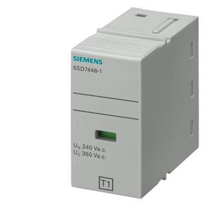 Steckteil Typ 1 L-N Anforderungsklasse B, Uc 350V 1-polig für Kombi-Ableiter 5SD744 Überspannungsschutzgeräte zum Schutz vor Überspannungen in elektrischen Anlagen. Die Überspannungsschutzgeräte von Siemens, als wichtiger Bestandteil der SENTRON Schutzkomponenten für die Elektroinstallation, bieten effektiven Schutz bei Blitz und Überspannungen infolge atmosphärischer Einflüsse oder Schaltvorgängen. Komfortable Montage- und Anschlusstechnik sowie ein durchgängiges Design sind die Kennzeichen der Gerätefamilie. Ob für Infrastruktur oder für industrielle Anforderungen, Siemens bietet Überspannungsschutzgeräte für alle Anwendungen und jedes Einsatzgebiet. Die Siemens Überspannungsschutzgeräte zeichnen sich vor allem aus durch: 1. Effektiver Investitions- und Anlagenschutz vor Blitz und Überspannungen. 2. Für jeden Anwendungsfall der richtige Blitz-/ und Überspannungsschutz (Typ1 bis 3). 3. Fernmeldekontakt zum externen Upload der Zustandsanzeige. 4. Zuverlässige Sicherheit bei der Installation dank standardmäßig enthaltenem Umgreif- und Berührungsschutz. 5. Werkzeugloses Lösen von der Hutschiene. 6. Klar ersichtliche Fehleranzeige. 7. Datamatrix-Code vorne am Gerät bietet schnell und einfach alle Infos rund um den Blitz- und Überspannungsschutz. 8. Optimale Technik für Ihre Sicherheit - nur von Siemens.