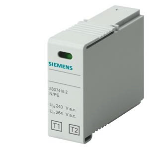 Steckteil T1/T2 für 5SD7483-6 und 5SD7483-7 Überspannungsschutzgeräte zum Schutz vor Überspannungen in elektrischen Anlagen. Die Überspannungsschutzgeräte von Siemens, als wichtiger Bestandteil der SENTRON Schutzkomponenten für die Elektroinstallation, bieten effektiven Schutz bei Blitz und Überspannungen infolge atmosphärischer Einflüsse oder Schaltvorgängen. Komfortable Montage- und Anschlusstechnik sowie ein durchgängiges Design sind die Kennzeichen der Gerätefamilie. Ob für Infrastruktur oder für industrielle Anforderungen, Siemens bietet Überspannungsschutzgeräte für alle Anwendungen und jedes Einsatzgebiet. Die Siemens Überspannungsschutzgeräte zeichnen sich vor allem aus durch: 1. Effektiver Investitions- und Anlagenschutz vor Blitz und Überspannungen. 2. Für jeden Anwendungsfall der richtige Blitz-/ und Überspannungsschutz (Typ1 bis 3). 3. Fernmeldekontakt zum externen Upload der Zustandsanzeige. 4. Zuverlässige Sicherheit bei der Installation dank standardmäßig enthaltenem Umgreif- und Berührungsschutz. 5. Werkzeugloses Lösen von der Hutschiene. 6. Klar ersichtliche Fehleranzeige. 7. Datamatrix-Code vorne am Gerät bietet schnell und einfach alle Infos rund um den Blitz- und Überspannungsschutz. 8. Optimale Technik für Ihre Sicherheit - nur von Siemens.