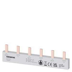 Stiftsammelschiene, 10mm2 Anschluss: 3x 2-phasig berührungssicher Stiftsammelschiene SENTRON 5ST3 als Zusatzkomponente für Fehlerstrom-Schutzeinrichtungen und Leitungsschutzschalter. Diese Zusatzkomponenten sind universell anbaubar. Sie lassen sich einfach und komfortabel montieren und anschließen. Dank des standardmäßigen Berührungsschutzes ist die Sicherheit bei der Installation zuverlässig gewährleistet. Optimale Technik für Ihre Sicherheit - nur von Siemens.