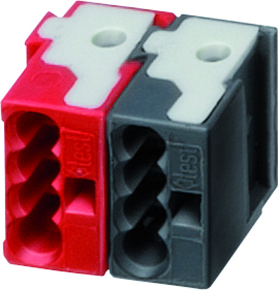 | Kurzbeschreibung | Busklemme, 2-polig, 4 Steckanschlüsse, rot/dunkelgrau |