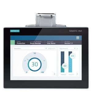 SIMATIC HMI MTP1200 PRO, für Tragarm (nicht erweiterbar, Flansch oben), 12,1 Widescreen-TFT-Display, 16 MIO Farben, PROFINET Schnittstelle, projektierbar ab WinCC Unified Comfort V18, enthält Open Source SW, die unentgeltlich überlassen wird Die SIMATIC HMI Unified Comfort Panels PRO zeichnen sich durch eine hohe Schutzart IP65 (NEMA4) aus und flexiblen Montagemöglichkeiten (z. B. direkt an der Maschine oder auf einem Standfuß bzw. an einem Tragarmsystem). Alle Geräte, in den Größen von 12 bis 22 Zoll, bieten maximalen Bedienkomfort dank moderner Multitouch-Technologie und ermöglichen innovative Bedienkonzepte auf Basis der neuen Visualisierungssoftware SIMATIC WinCC Unified. Die Funktionalität der Geräte kann durch die integrierte Edge-Funktionalität nach Bedarf einfach erweitert werden. Jedes Unified Comfort Panel PRO ist in zwei Design-Varianten erhältlich. Standard-Design: Siemens und SIMATIC HMI Branding sowie mit einem silbernen Aluminiumrahmen. Neutrales-Design: Ohne Branding und mit einen schwarzen Aluminiumrahmen. Die Systemlimits sind identisch zu den Unified Comfort Panels (Einbaugeräten) und wurden zum Vorgängermodell mindestens verdoppelt, teilweise sogar verdreifacht.